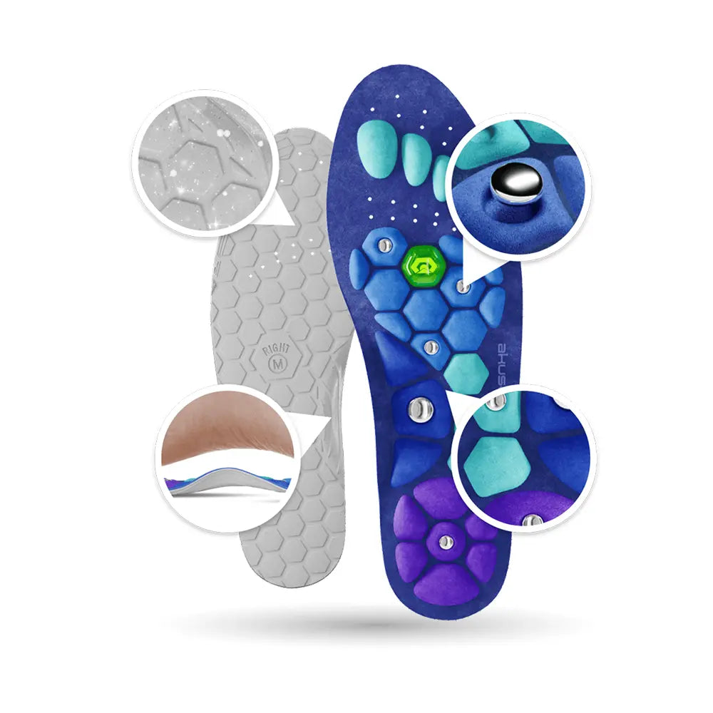 Conçues pour éliminer les douleurs au talon, à la voûte plantaire et les jambes lourdes, nos semelles StepWell+ combinent acupression réflexologique et magnétothérapie pour stimuler la circulation, réduire l'inflammation et vous permettre de marcher confortablement toute la journée.